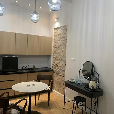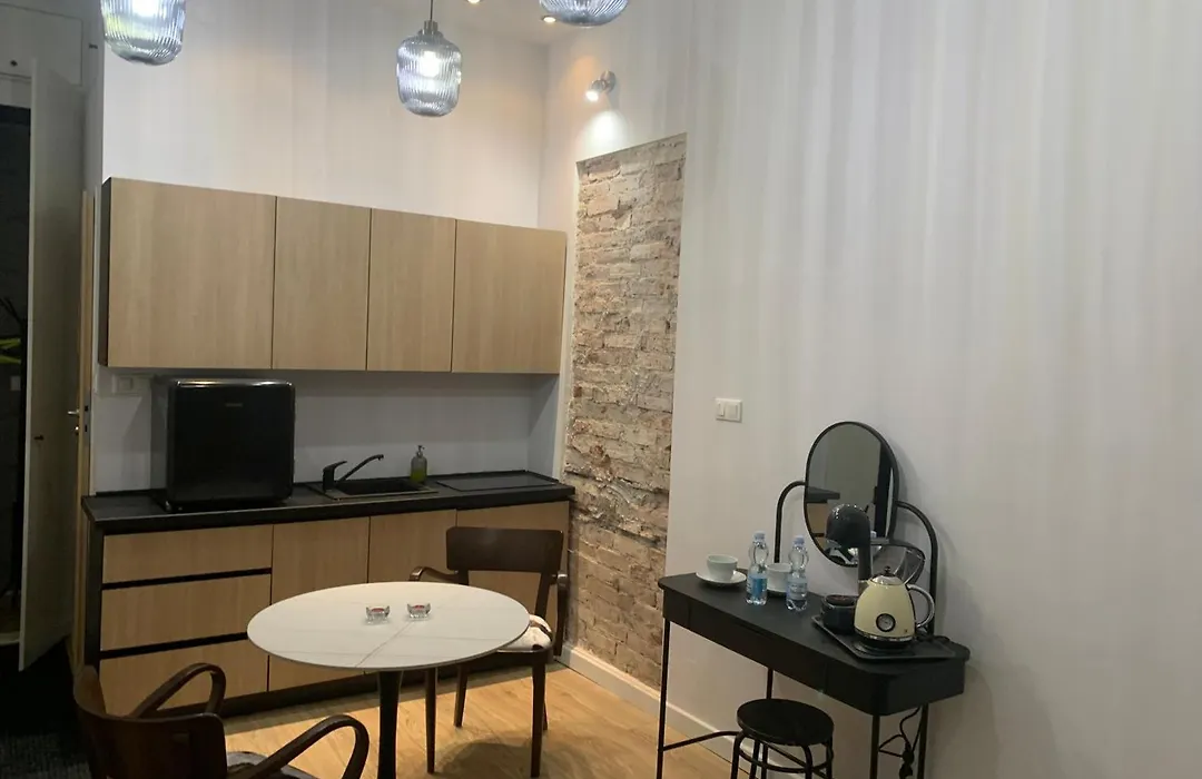 A mini-kitchen at Apartament W Centrum Warszawy features a fridge and a cooktop. Apartament W Centrum Warszawy is merely a 5-minute walk from Metro Politechnika 01 bus stop and a 20-minute stroll from Warszawa Główna train station.